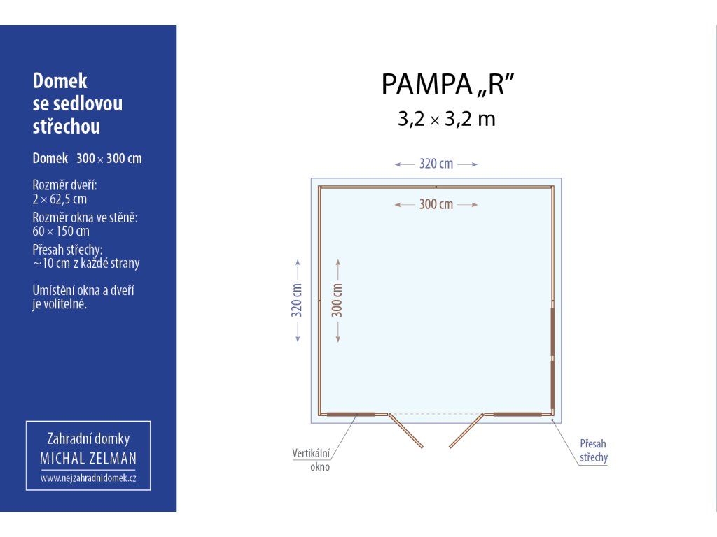 Dřevěný domek PAMPA s pultovou střechou (3,2 × 3,2 m)
