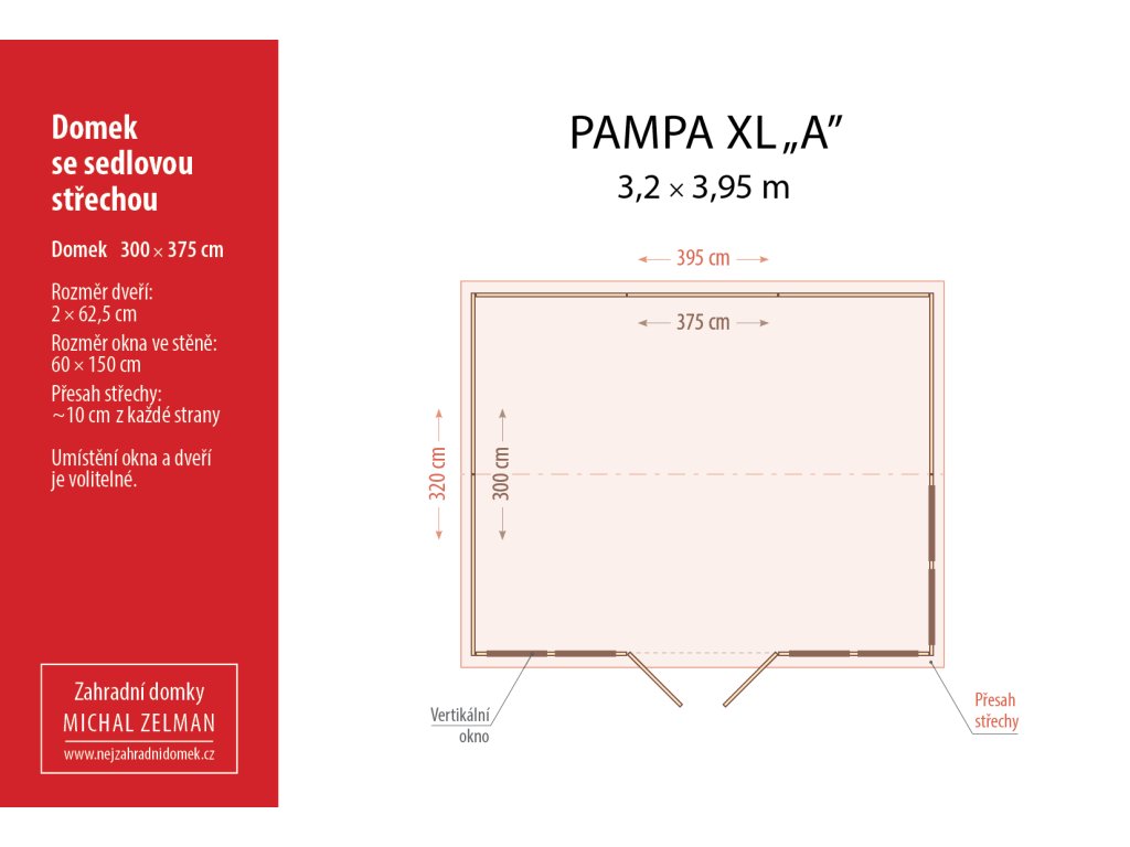 Dřevěný domek PAMPA XL se sedlovou střechou (3,2 × 3,95 m)