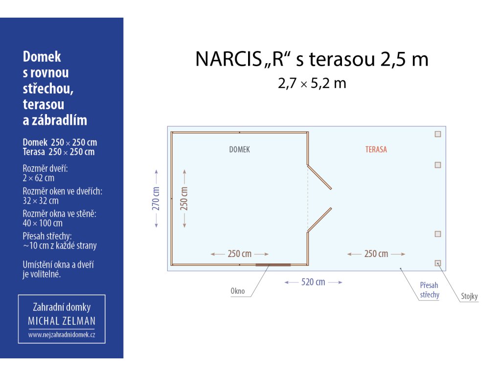 Dřevěný domek NARCIS s terasou (2,7 × 5,2 m)