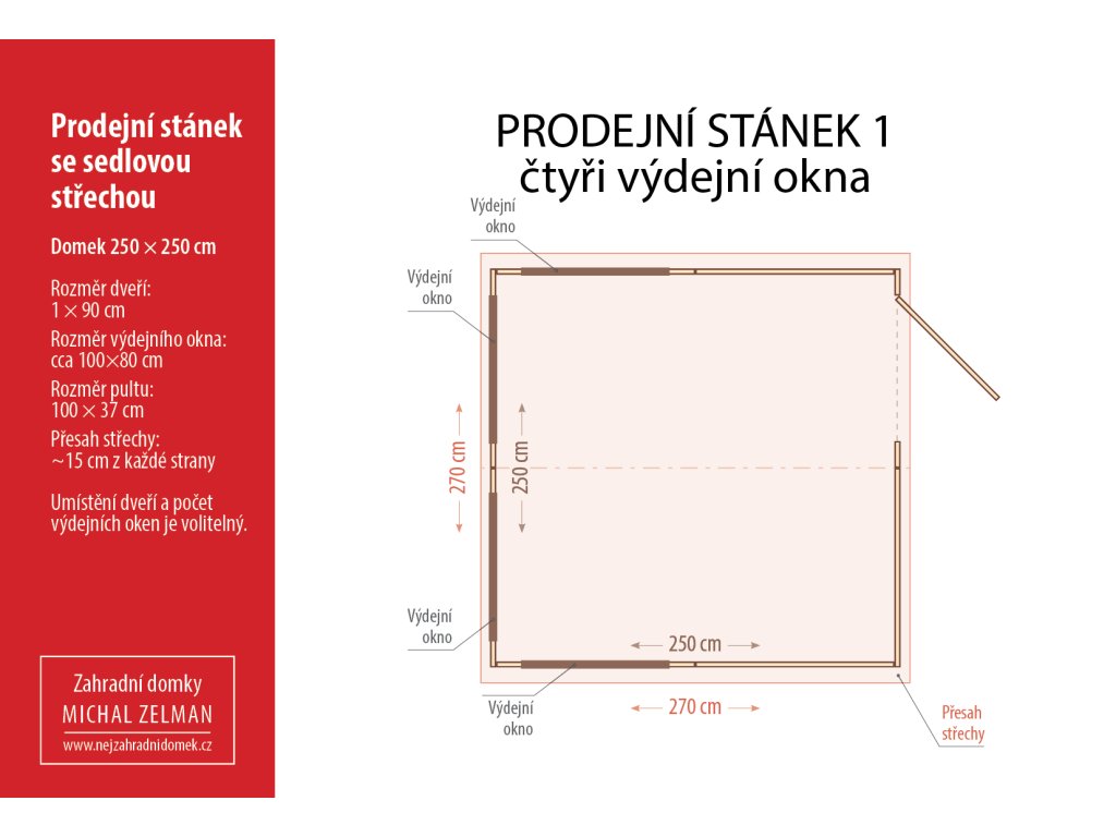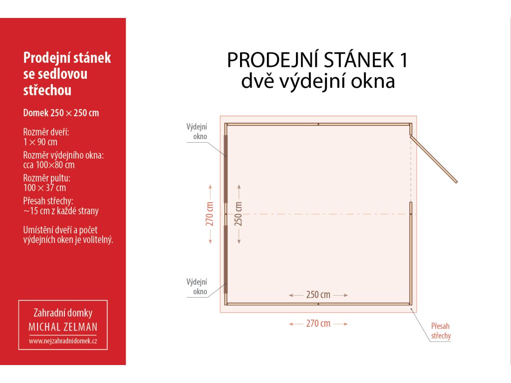 - Flexibilní umístění dveří: Vstupní dveře vám umístíme na libovolnou stranu stánku podle vašich provozních potřeb.